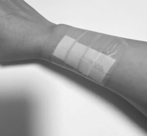 ガーゼ部分で傷口をカバーできるようにしました。